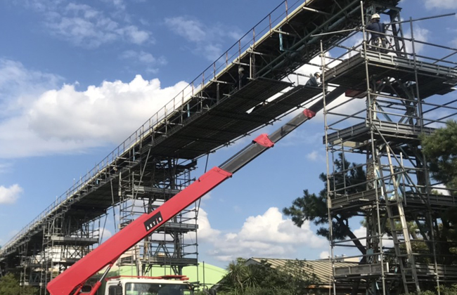 下から足場をくみ上げることが困難な現場では必要とされる工法です。