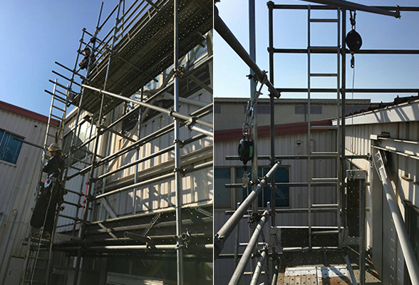 主に小規模な工事、作業現場や狭いビル間での足場として用いられます。