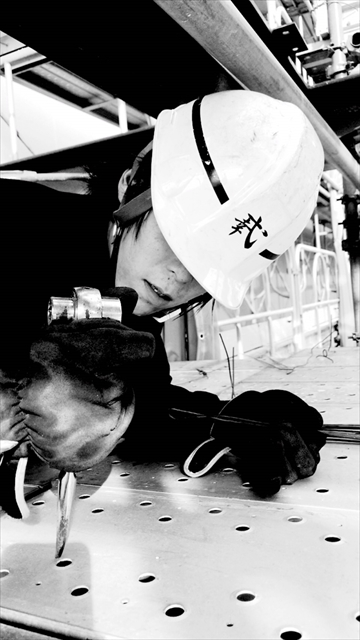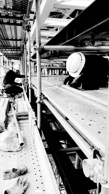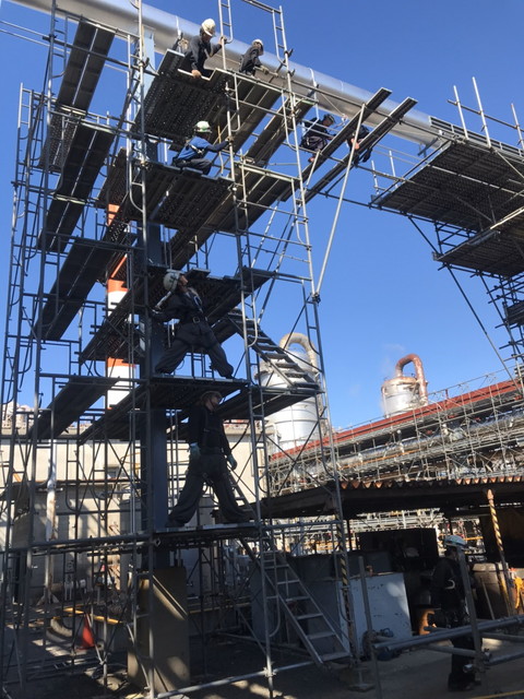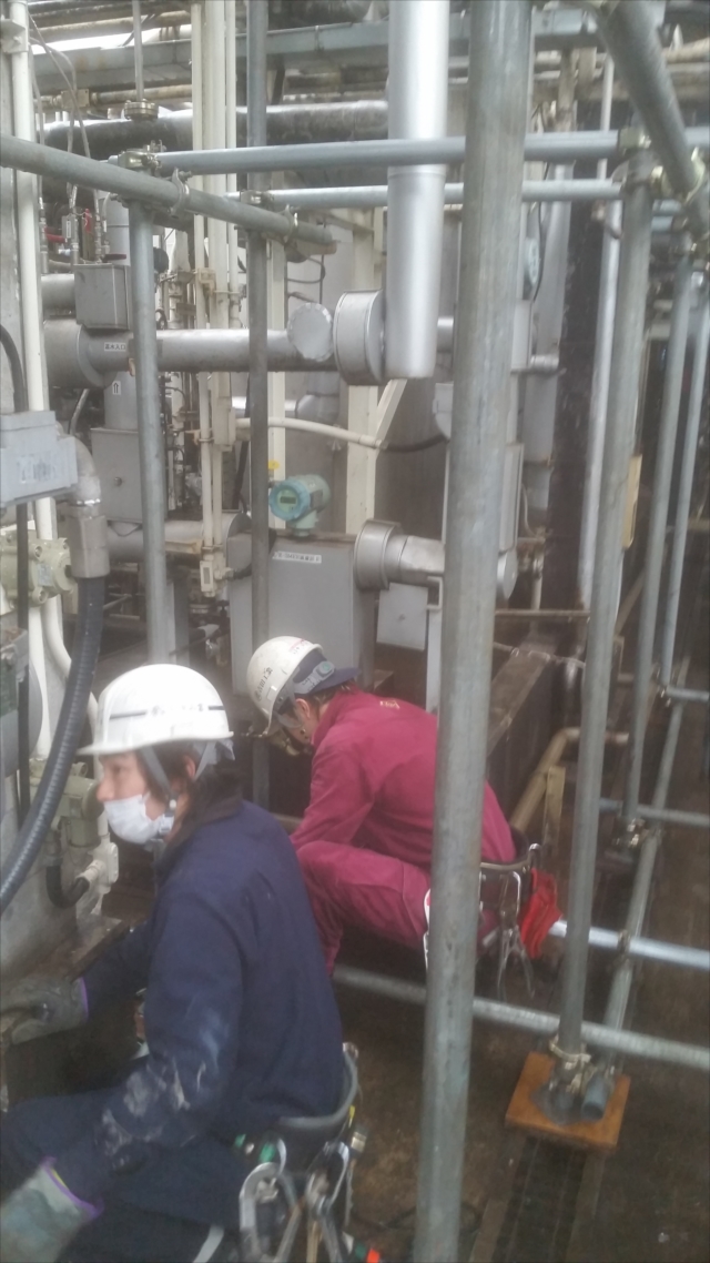 狭い所でも、しっかりと安全帯を使用しなが組み立てました。