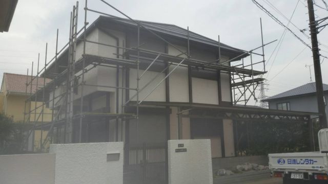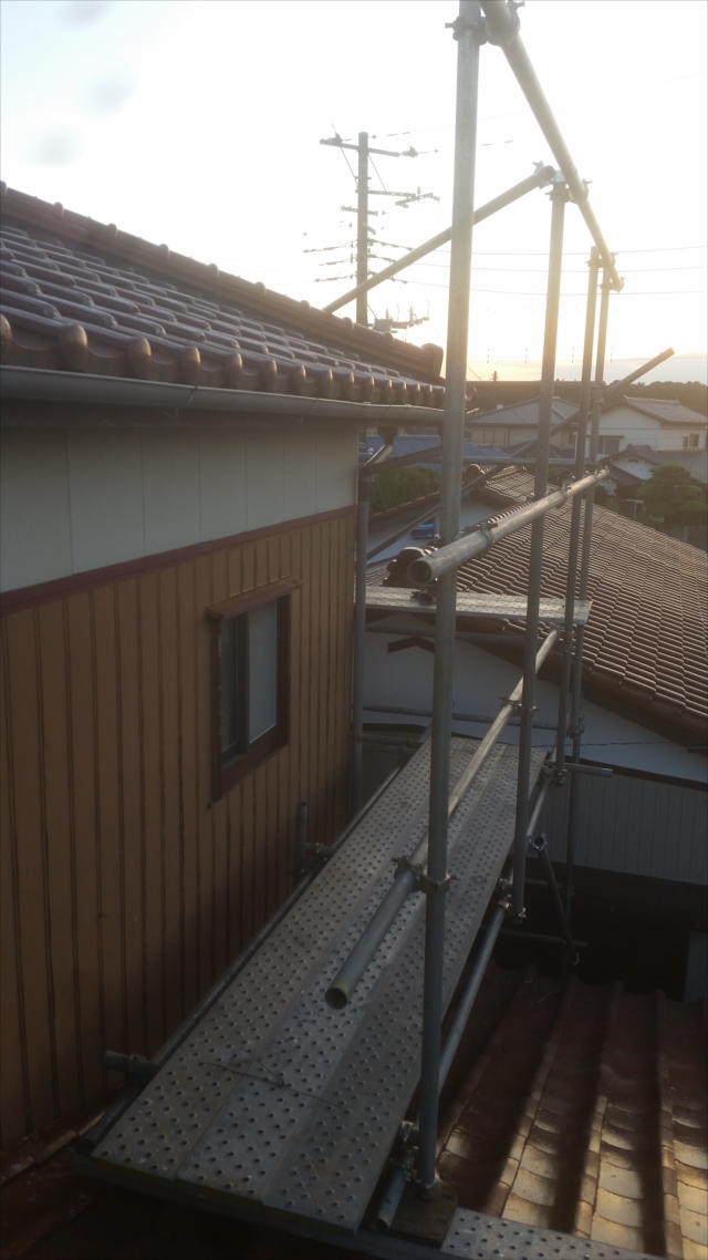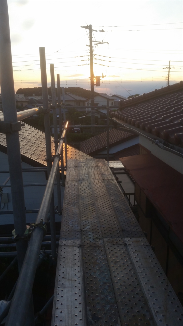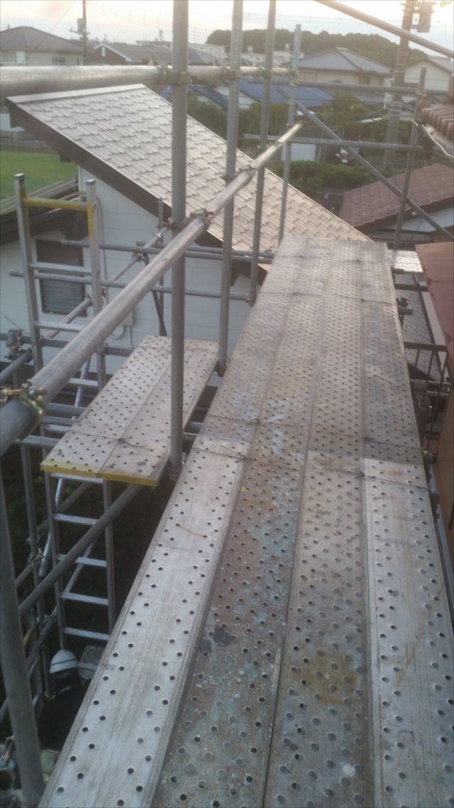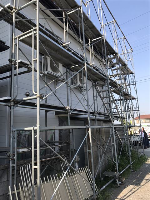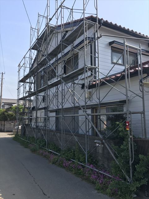 外現場でもしっかりとKYミーティングをし、安全第一で足場の組み立てをおこないました。