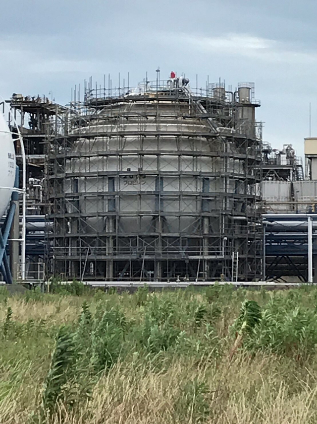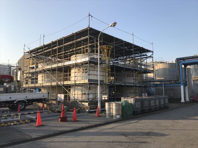 他県にて夜間工事用昇降足場を組み立ててきました。